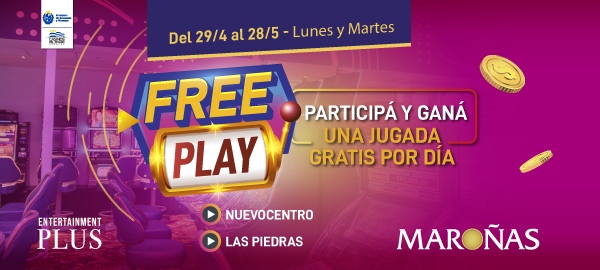 Todos los lunes y martes desde el 29 de abril al 28 de mayo Free Play en sala Nuevo Centro y Las Piedras.