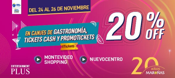 Del 24 al 26 de Noviembre 20% de descuento en canjes de gastronomia, promotickets y ticket cash.