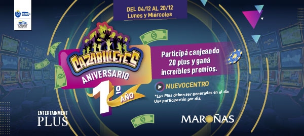 Del 4 al 20 de Diciembre, lunes y miercoles 17 a 19 hs y de 21 a 23 hs vení a participar del Cazabilletes en sala Nuevocentro.